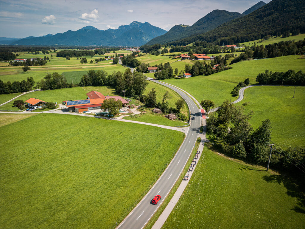 DIE.PANORAMICA, die 140km und 1200 Hm umfassende Tour führt über den Simssee zur Eggstätt Hemhofer Seenplatte und anschließend zur ersten Verpflegungsstation in Pittenhart. Idyllische kleine Straßen führen Richtung Osten zur zweiten Verpflegung bei den Adelholzener Wasserwelten, unserer Party-Station mit Live-DJ. Entlang der Voralpen geht es in westlicher Richtung, zum “Hendl-Hill” nach Bernau mit Schuhplattlern und Musik, ehe ihr die letzten Kilometer nach Bad Feilnbach in Angriff nehmt.